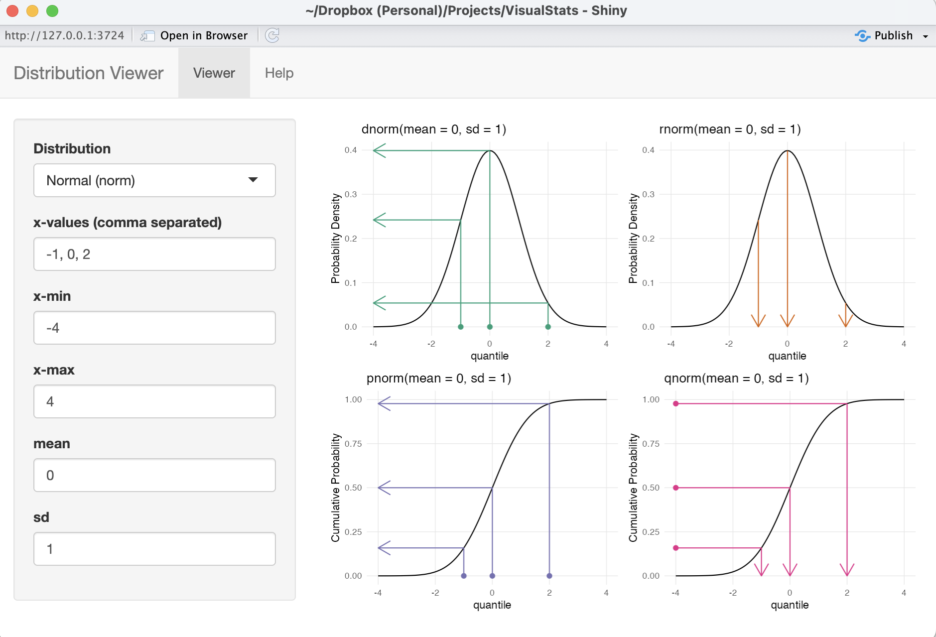 - Features: Plot of PDF, Formulae with calculated values that change as parameters and quantile inputs change