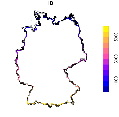 # create grid <- grid_de st_bbox(shp_de) |> # 10km x 10km cells st_as_stars(dx = 10000) |> st_crop(shp_de) # download and clean population data <- local({ sf_pop load(url("https://raw.githubusercontent.com/edzer/sdsr/main/data/ch12.rda"), envir = environment()) get(ls()[1]) }) # aggregate by grid cell <- grid_agg_pop aggregate(sf_pop, st_as_sf(grd, na.rm = FALSE), sum)