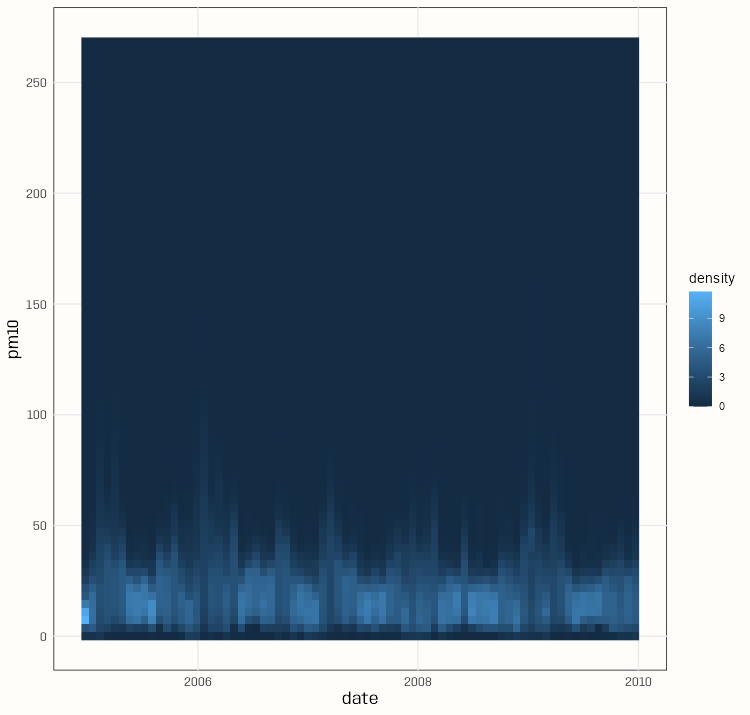 - Regular (e.g., hourly) measurements of air quality at a spatially irregular set of points (measurement stations)