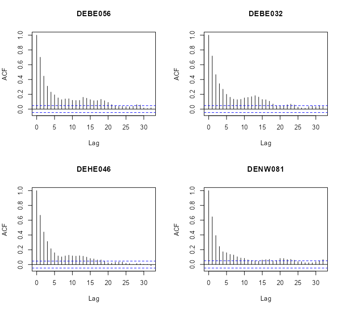 - A temporal lag of one or a few days leads already to a large variability compared to spatial distances of few hundred kilometres, implying that the temporal correlation is too weak to considerably improve the overall prediction.